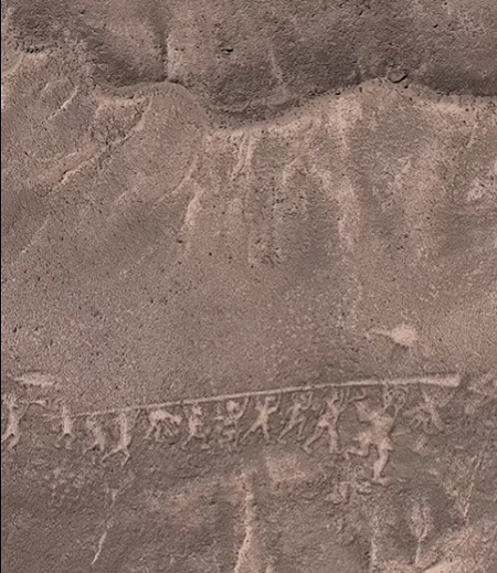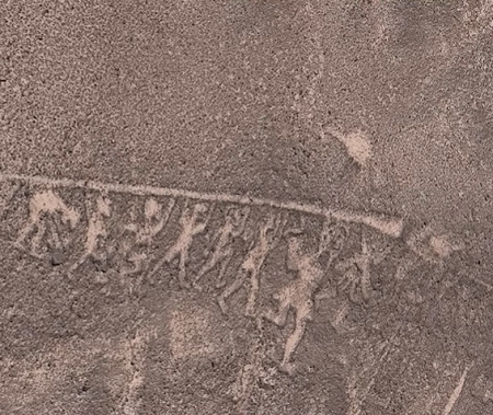 Tyto geoglyfy vedou k hoře Pintados Cerros, v širokém pásmu asi čtyř kilometrů. Je to zřejmě dlouhá zpráva bohům, viditelná i z velké výšky, a stojí tu zřejmě velmi dlouho, neboť poušť zde existuje více než 3000 let.
